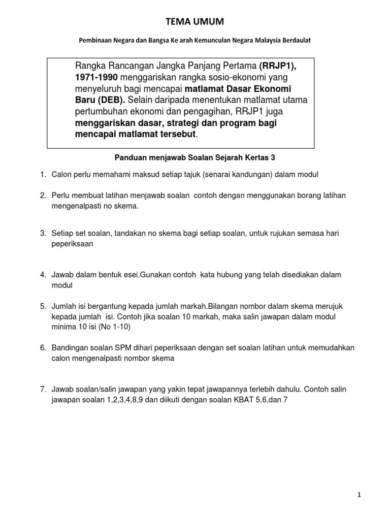 Dasar Ekonomi Baru Sejarah Kertas 3 Spm Tingkatan 5 Bab 8 Bumi Gemilang